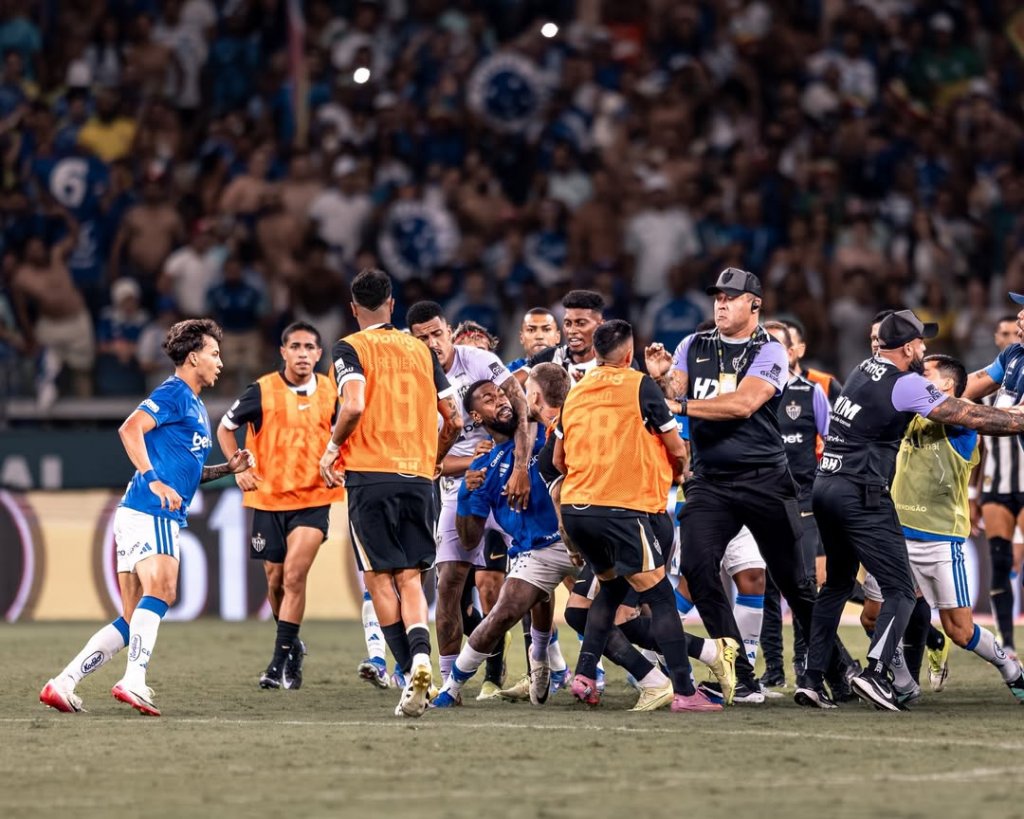 Nos instantes finais, o goleiro Everson se envolveu em um embate físico com Christian, o que desencadeou um efeito dominó entre os atletas. Jogadores de Cruzeiro e Atlético-MG passaram a trocar socos e chutes dentro de campo, enquanto integrantes das comissões técnicas e seguranças invadiam o gramado para tentar conter o conflito.